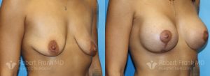 32-year-old woman interested in a mastopexy. She is 5’4″ and weighs approximately 102 pounds. She reports that she was up to a DDD during her pregnancies and came down to a DD and then to a D cup. The patient underwent a bilateral mastopexy and post-operative photos taken 3 months.
